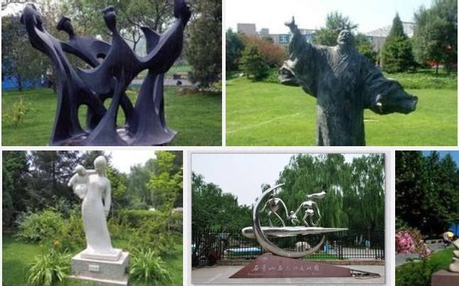 石景山雕塑公园位于北京石景山区八角西街,银杏宝宝乐园北侧。全园占地36600平方米,其中水面4500平方米,是一座设计独特、精巧别致的艺术园林,是北京第一座以雕塑主题公园。园内安放的石雕、铜雕及新型材料雕像,均为中央美术学院雕塑系创作。