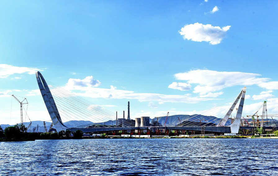 首钢新桥位于厂东门外,是一座气势恢宏的钢索拉力桥,是为祖国70华诞献礼新建成通车的桥梁。桥梁横跨永定河,连接了北京西部石景山和门头沟地区,成为长安街西延线上的一座地标性建筑。在园区的群明湖畔,可以拍到整座桥优美的身姿。
