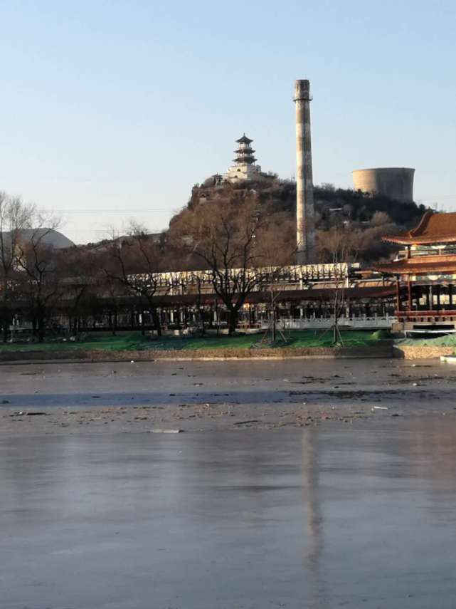 群明湖与秀湖是整个园区的两片水面,站在湖畔,可以清晰地看到石景山。从1919年遗留的资料可以知道,这座当时人们称为燕都第一仙山的石经山原本就是一个山坡,后来随着北京城市建设,特别为以首钢为代表的“京西八大厂”服务而设立的行政区,就以“石经山”谐音取名为石景山区。